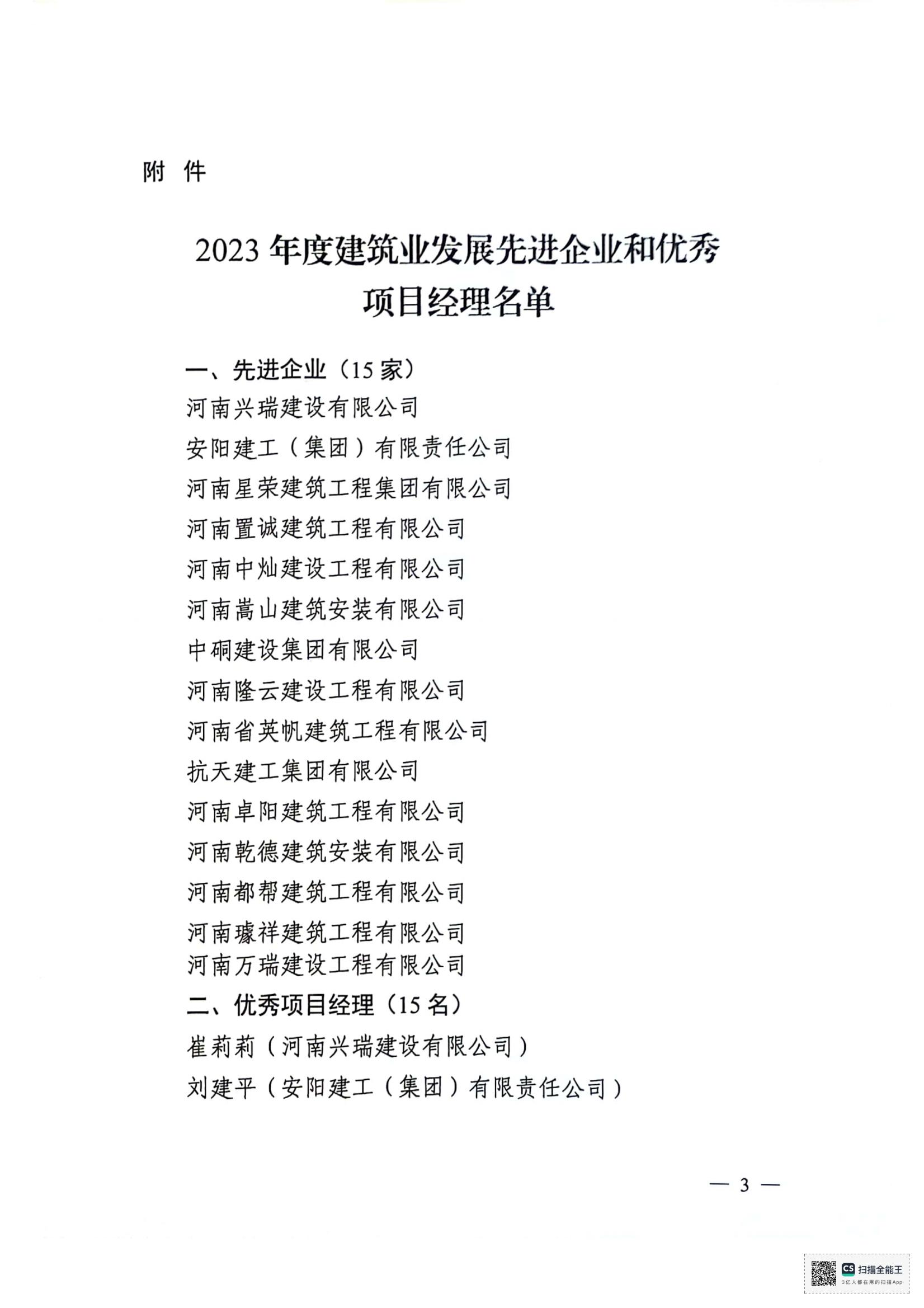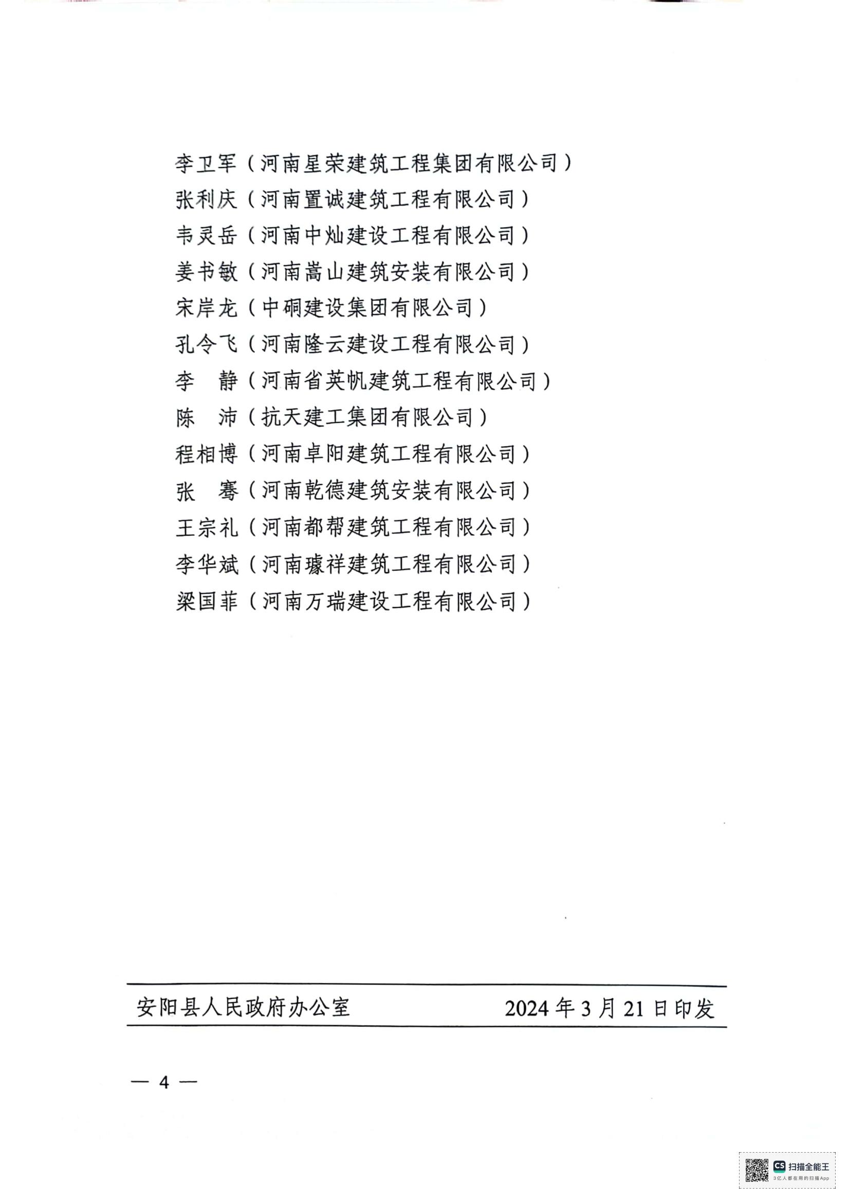 安阳县人民政府关于表扬建筑业发展先 进企业和优 秀项目经理的决定
